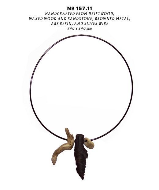 Juergen Veit, handcrafted from driftwood, waxed wood and sandstone, browned metal, abs resin, and silver wire