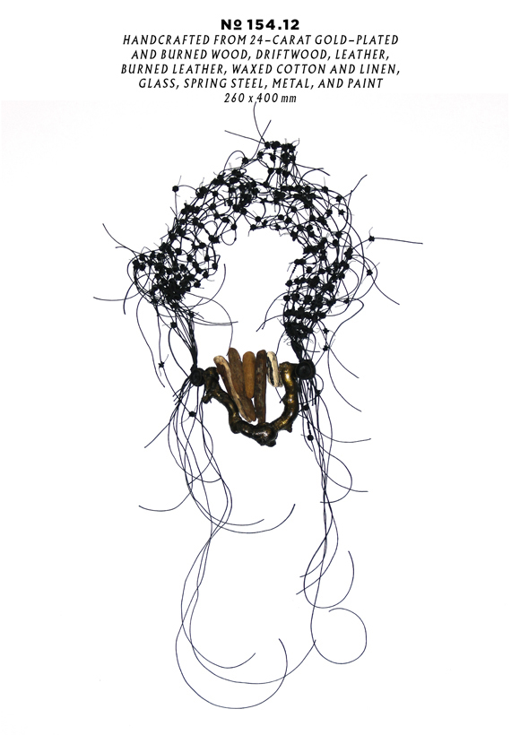 Juergen Veit, handcrafted from 24-carat gold-plated and burned wood, driftwood, leather, burned leather, Waxed cotton and linen, glass, spring steel, metal, and paint