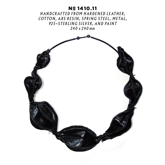 Juergen Veit, handcrafted from hardened leather, cotton, abs resin, spring steel, metal, 925-sterling silver, and paint